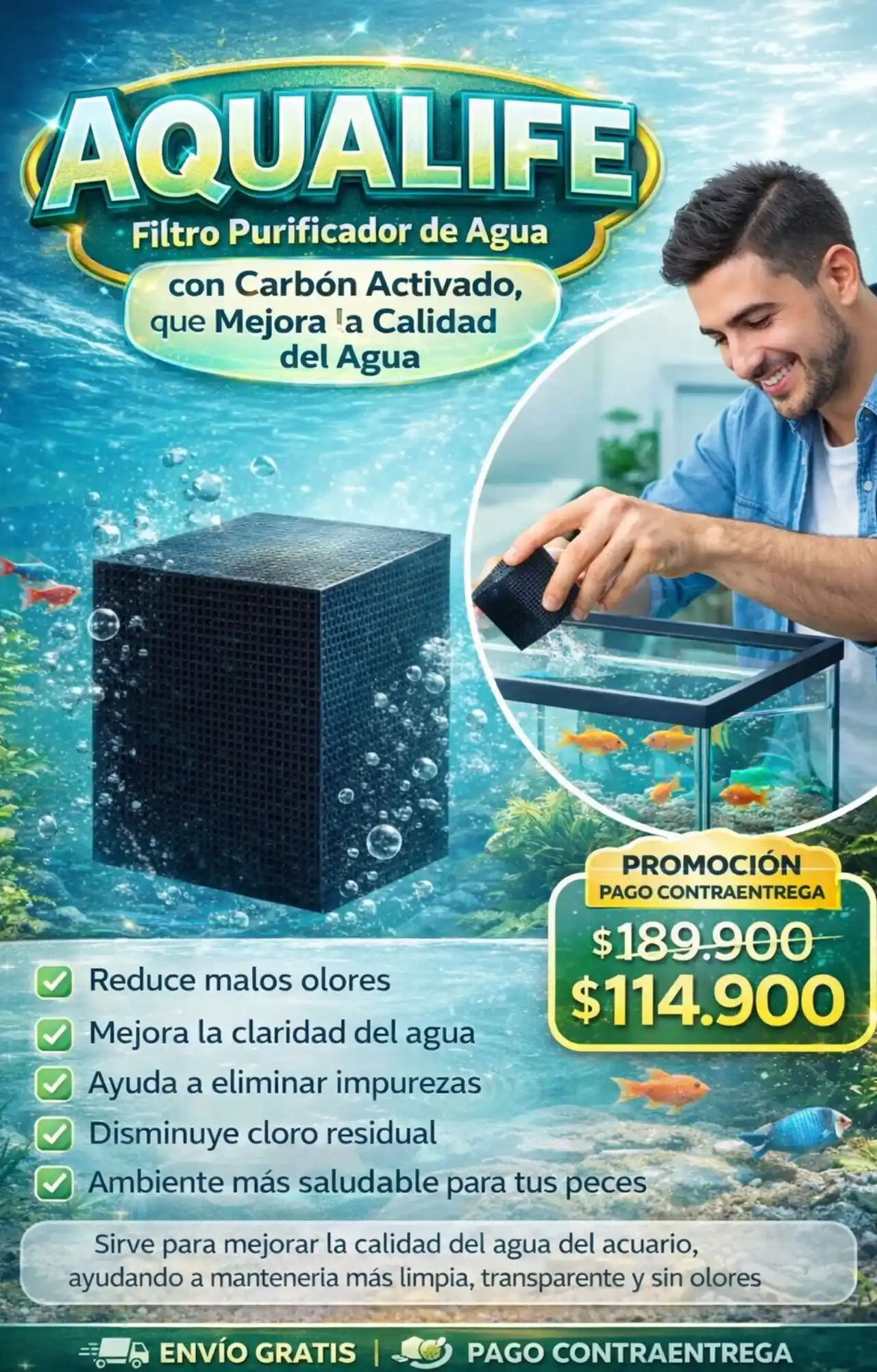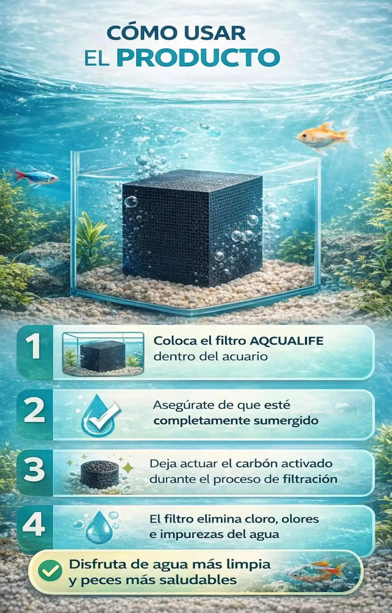 AQCUALIFE es ideal para acuarios pequeños y medianos, tanto de agua dulce como de uso doméstico
