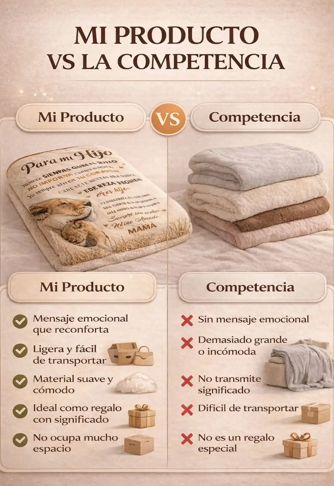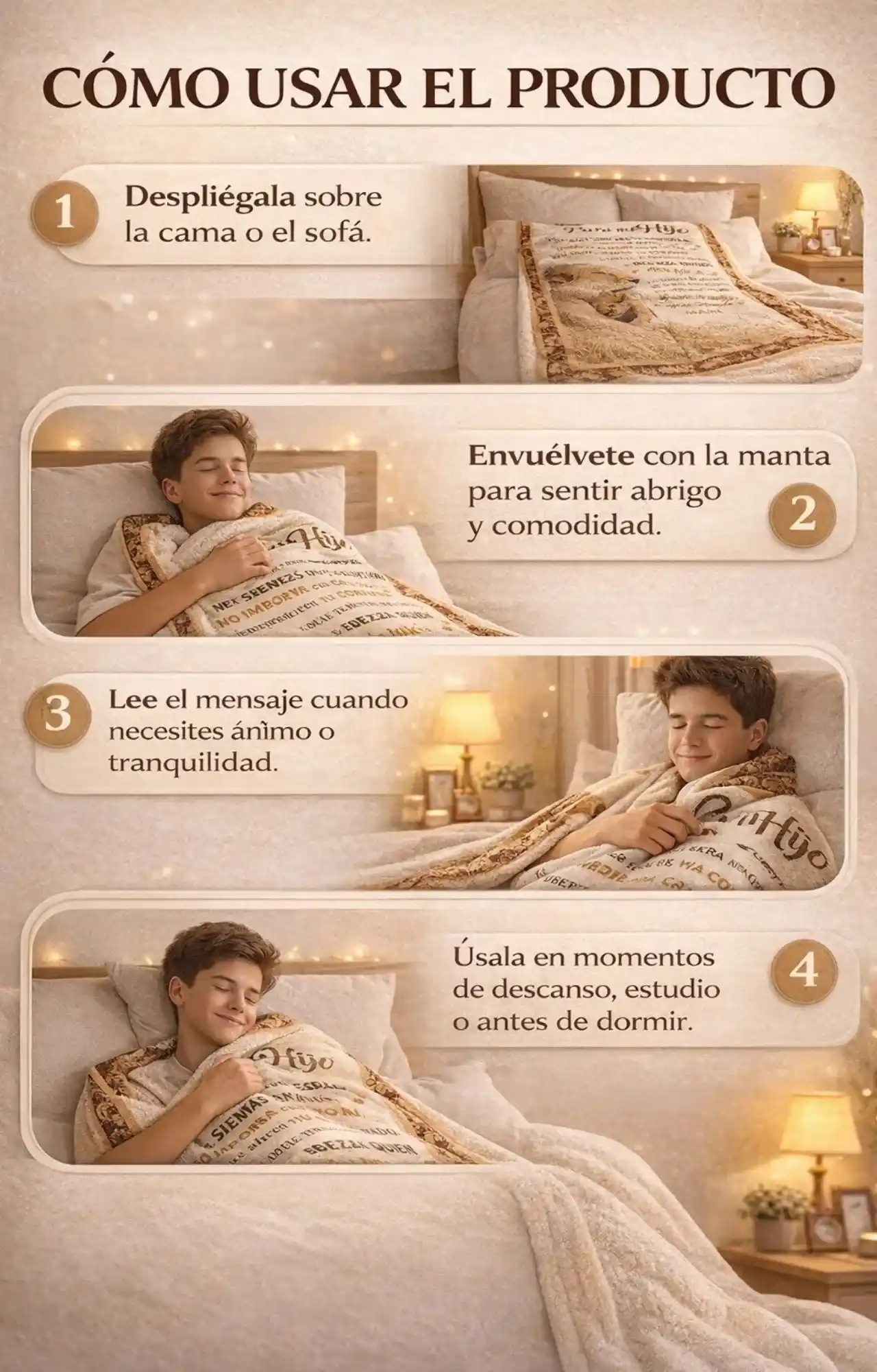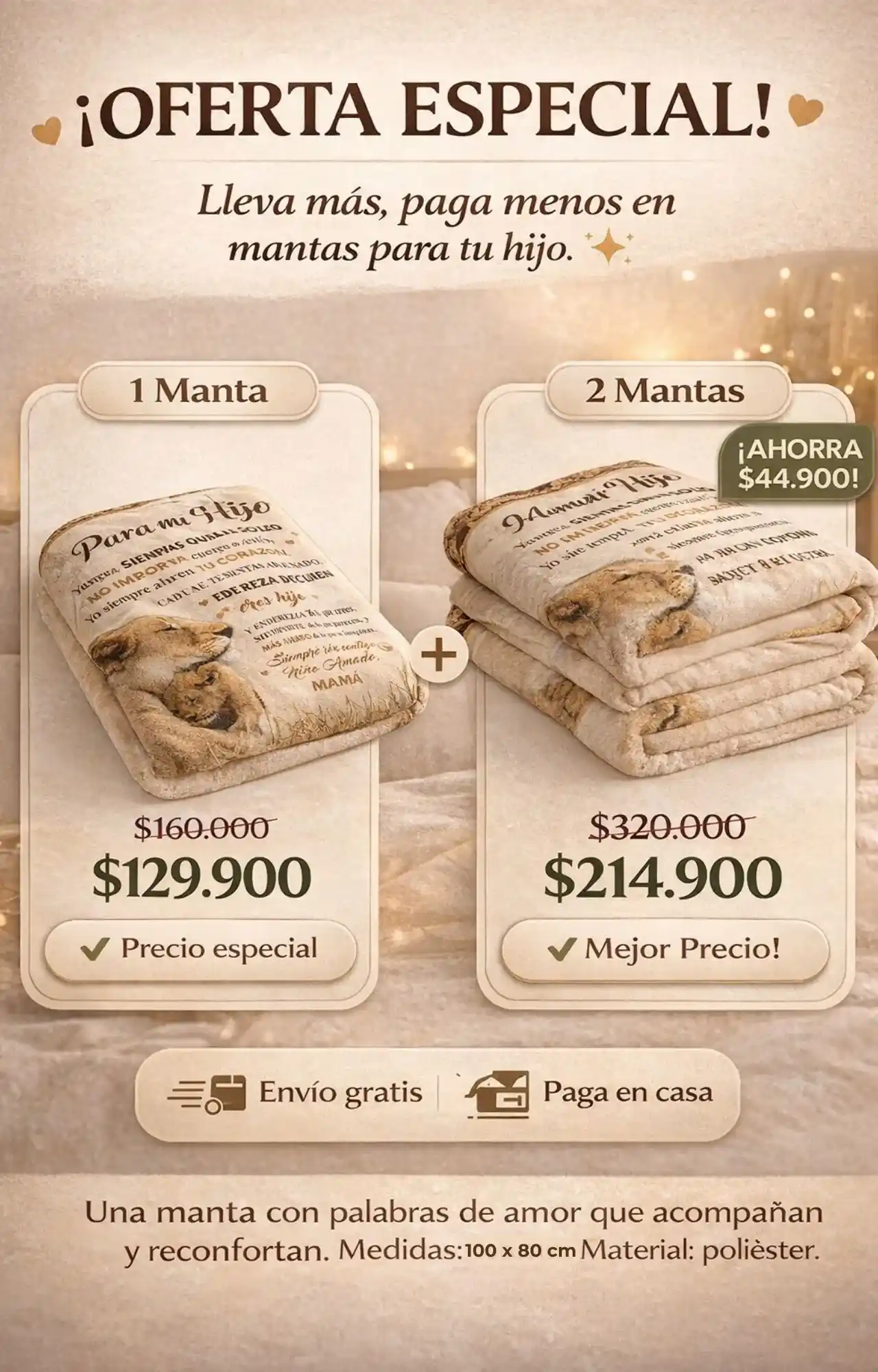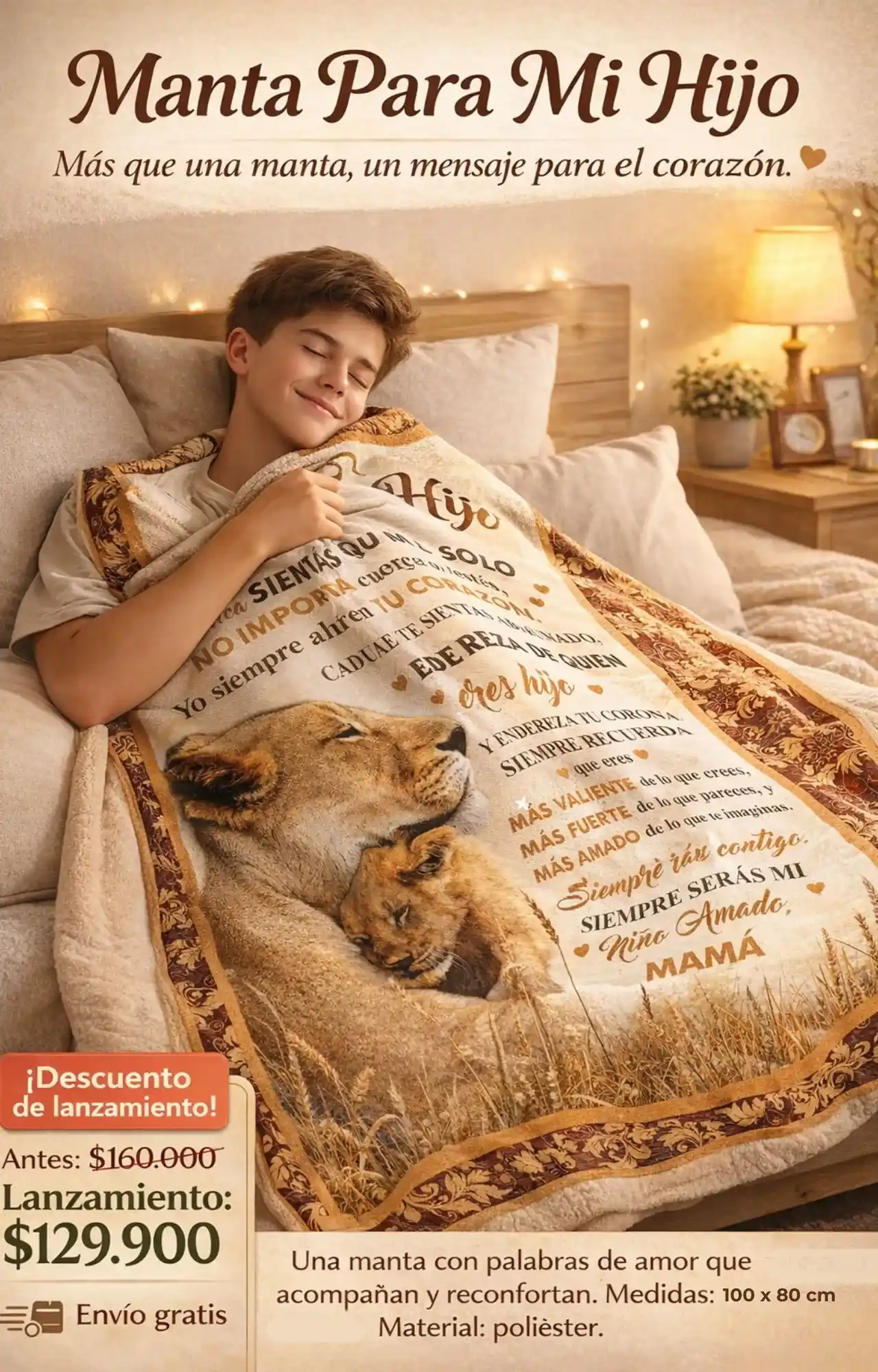 El mensaje ya viene incluido en la manta, cuidadosamente diseñado para transmitir amor, apoyo y protección.